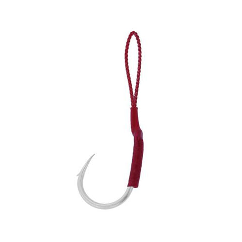 The assist 510 features a curved point with an innovative outbarb that will not nick the leader if it somehow catches the line while jigging. No vertical jig should be fished without one. The super strong braided line loop easily attaches to any jig. One of the first Assist hooks introduced in this country and still the best by design.